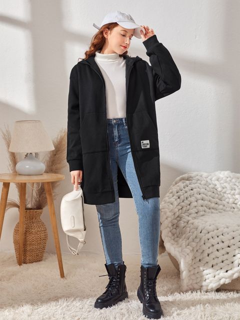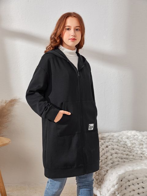 SHEIN Teen Girls Letter Graphic Thermal Hooded Sweatshirt