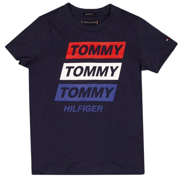 makes a bolder addition to the range of kidswear from Tommy Hilfiger this season and creates an eye-catching choice of t-shirt for almost any occasion. Cut to a crew neck with short sleeves and featuring printed branding to the centre of the chest.