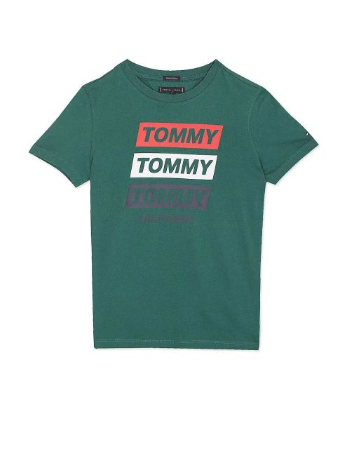 makes a bolder addition to the range of kidswear from Tommy Hilfiger this season and creates an eye-catching choice of t-shirt for almost any occasion. Cut to a crew neck with short sleeves and featuring printed branding to the centre of the chest.