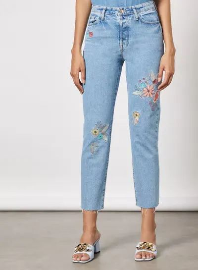 Embroidered straight-leg jeans