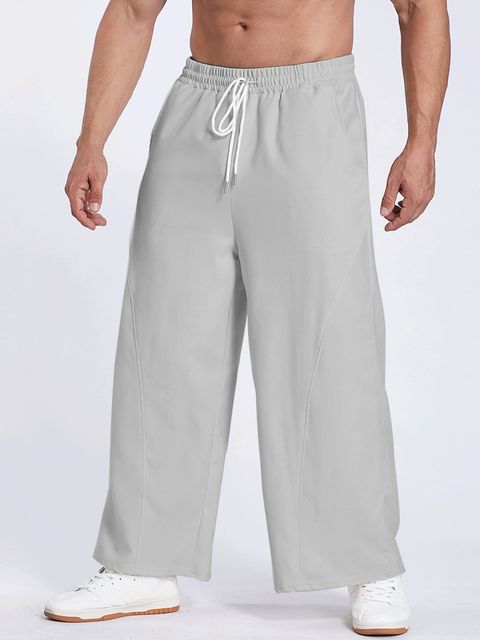 Extended Sizes Men Drawstring Waist Wide Leg Pants